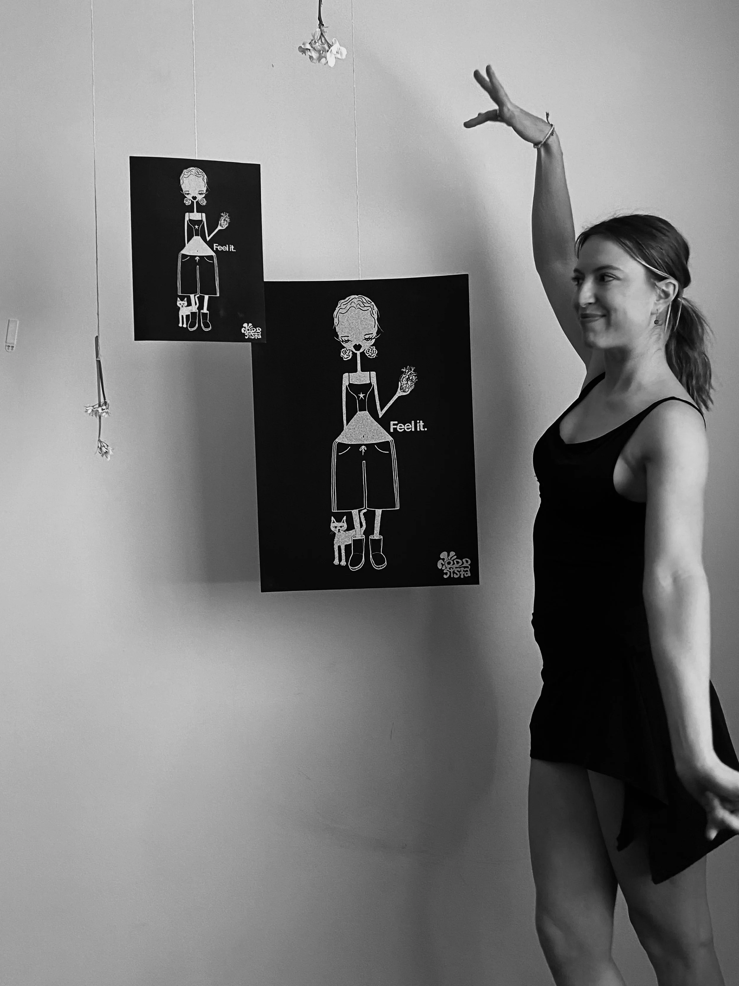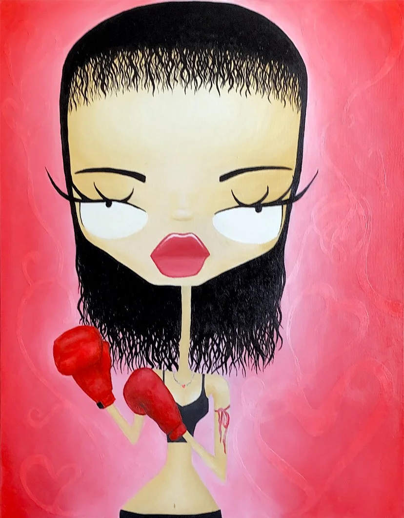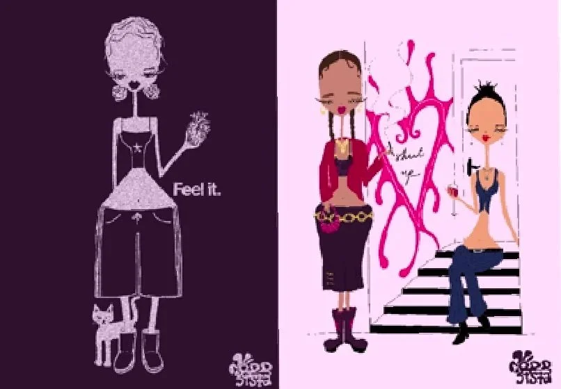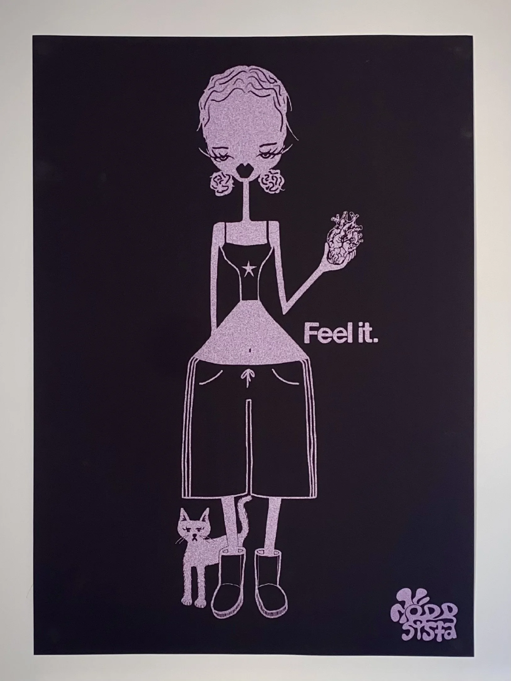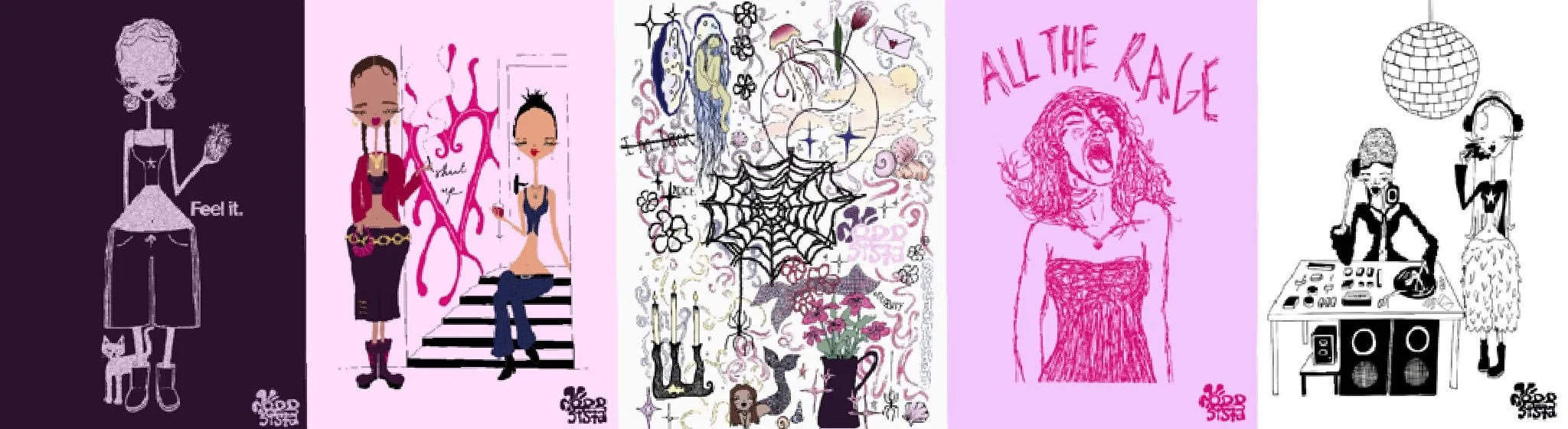 The palette is very feminine both strong & soft. Colours include deep purples, variations of pink, black & white. Together these colours are confident. It was important for the art to hold bold emotion & be difficult to ignore.
